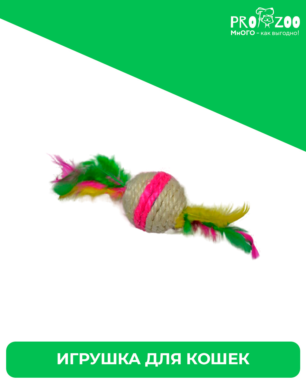 Papa and Mama Pet Мячик с перьями для кошек, сизаль (4,5см)